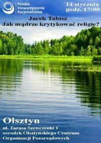 Olsztyńscy racjonaliści zapraszają na wykład Jacka Tabisza zatytułowany "Jak mądrze krytykować religię?". Wykład odbędzie się dnia 14 stycznia o godzinie 17:00, w ośrodku Olsztyńskiego Centrum Organizacji Pozarządowych, na ulicy Tarasa Szewczenki 1.