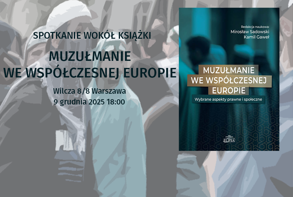 Serdecznie zapraszamy Państwa na spotkanie autorskie poświęcone książce ,,Muzułmanie we współczesnej Europie. Wybrane aspekty prawne i społeczne”, która ukazała się niedawno pod redakcją naukowa Prof. dr hab. Mirosława Sadowskiego oraz wiceprezesa PSR Kamil Gawła. Spotkanie będzie okazją do poznania części z Autorów rozdziałów oraz wymiany myśli wokół tytułowego tematu.